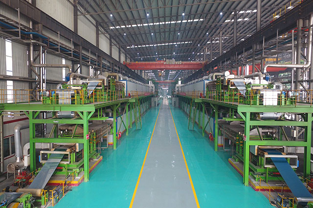 We have established three 150 m/min color-coated high-end automation production lines. In pressure testing of roller, timely adjusted first coat and top coat dual-roller coating head can be designed with dual-coating......