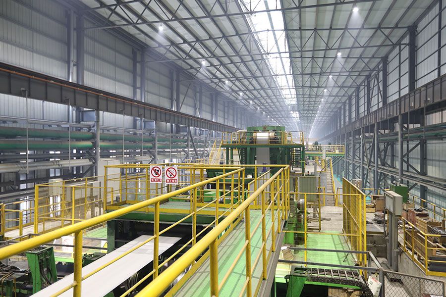 公司擁有1420酸洗冷軋聯(lián)合機(jī)組(PL-TCM)一套,由中國(guó)一重及中冶南方共同設(shè)計(jì)制造,電氣采用上海寶信軟件自動(dòng)化控制系統(tǒng),機(jī)組設(shè)備配置合理,整體裝備達(dá)到國(guó)內(nèi)一流水平。機(jī)械設(shè)備涵蓋激光焊接設(shè)備、噴射紊流式酸洗設(shè)備、高精度雙塔式切邊設(shè)備(SMS)、五機(jī)架竄輥式UCM連軋機(jī)、新型回轉(zhuǎn)式雙卷筒卷取機(jī);軋機(jī)電氣采用秒流量控制系統(tǒng),關(guān)鍵電氣設(shè)備包含激光測(cè)速儀(BETA)、測(cè)厚儀(IMS)、張力計(jì)(ABB)、板型儀(ABB)等,可實(shí)現(xiàn)板厚、板型全自動(dòng)化控制,軋制速度可達(dá)1500m/min,機(jī)組年產(chǎn)量120萬(wàn)噸,成品厚度為0.2—2.0mm,產(chǎn)品主要面向家電、食品、建筑、汽車(chē)等市場(chǎng)。