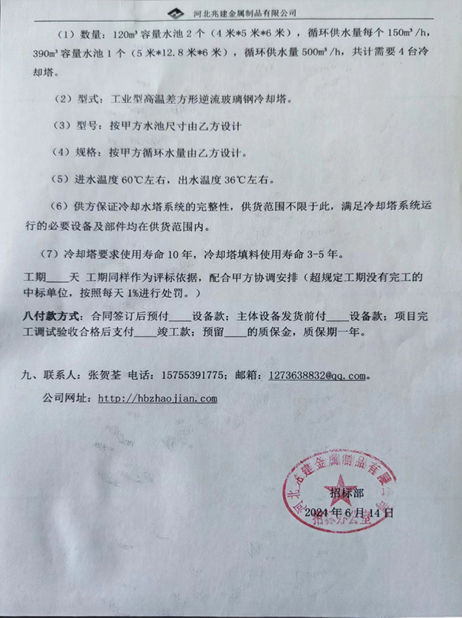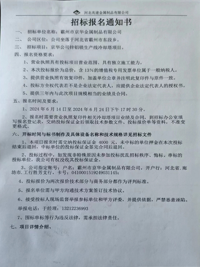 - 招標(biāo)業(yè)主: 河北兆建金屬制品有限公司