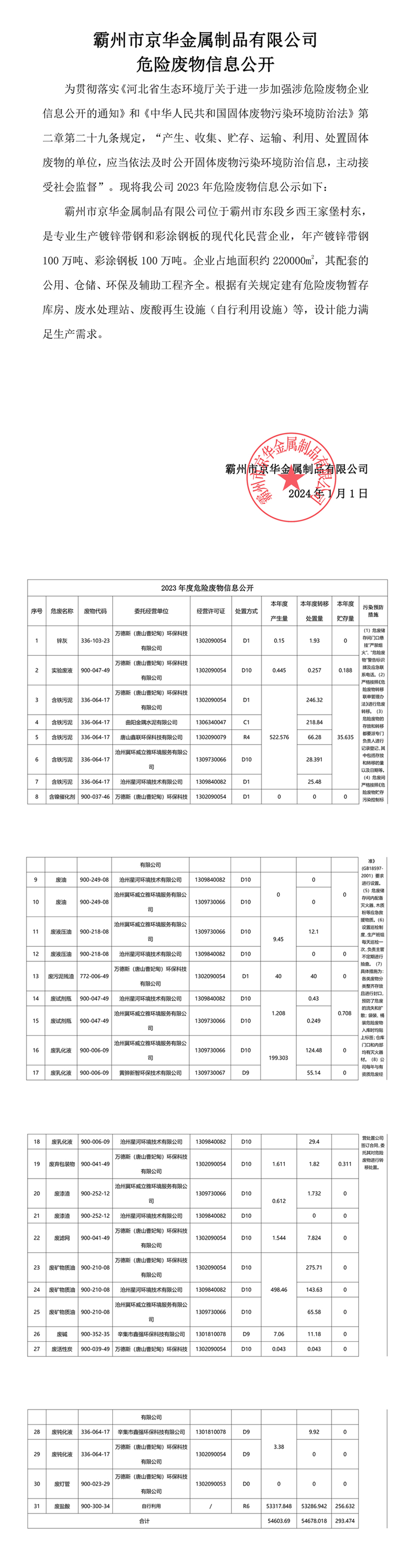 下一篇:24年1月危險(xiǎn)廢物信息公開(kāi)-霸州市京華金屬制品有限公司