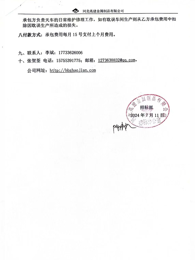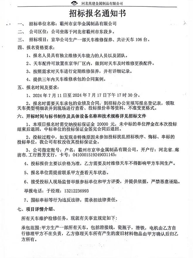 - 招標(biāo)業(yè)主: 河北兆建金屬制品有限公司