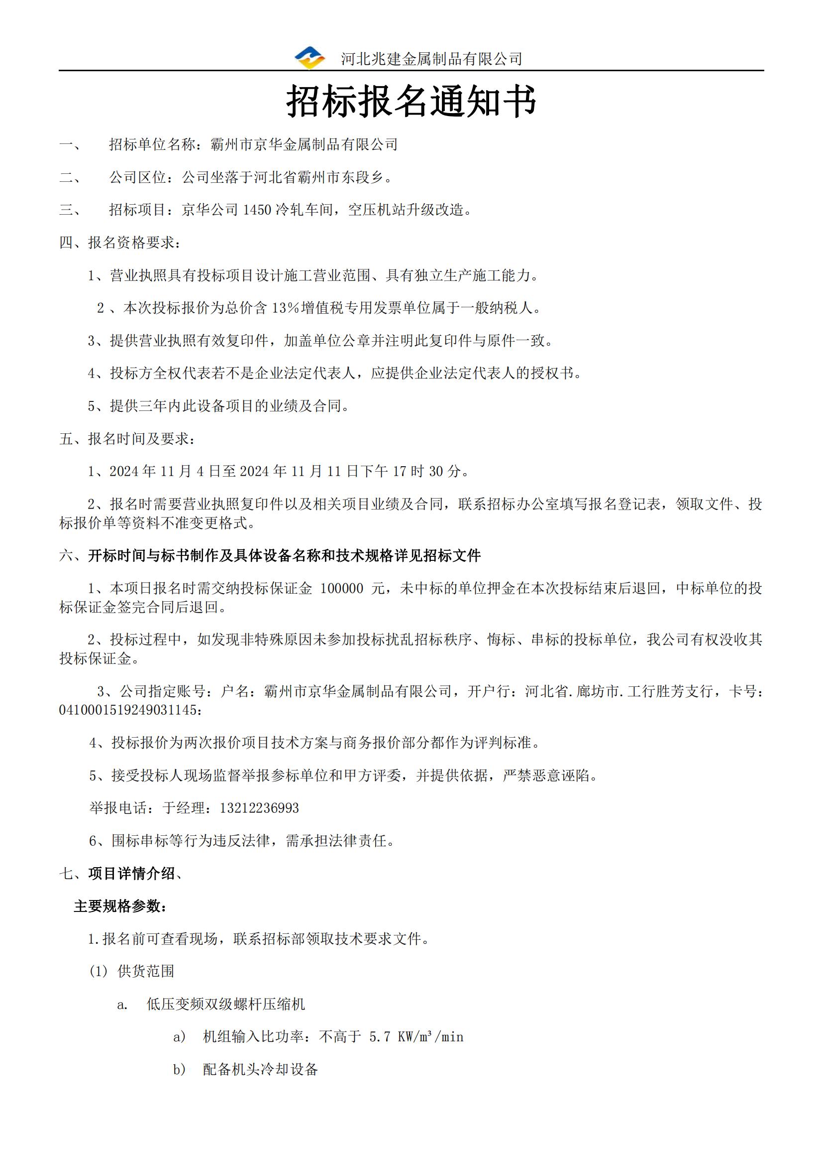 - 招標(biāo)業(yè)主: 河北兆建金屬制品有限公司