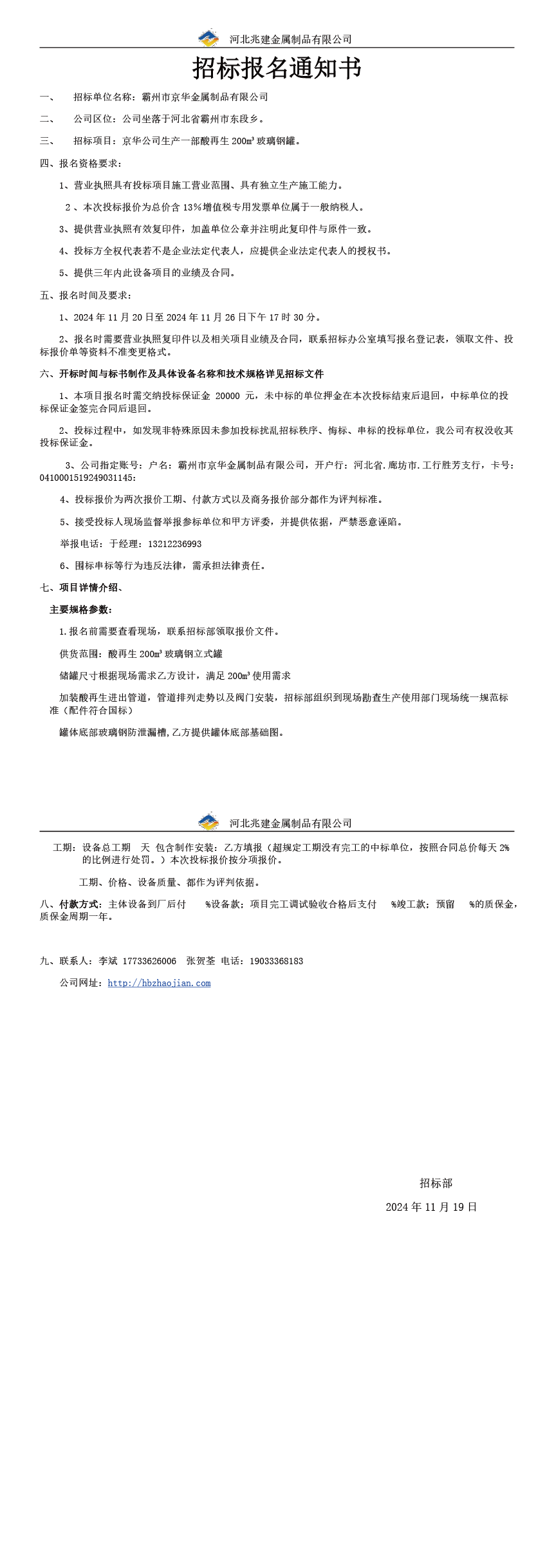 - 招標(biāo)業(yè)主: 河北兆建金屬制品有限公司