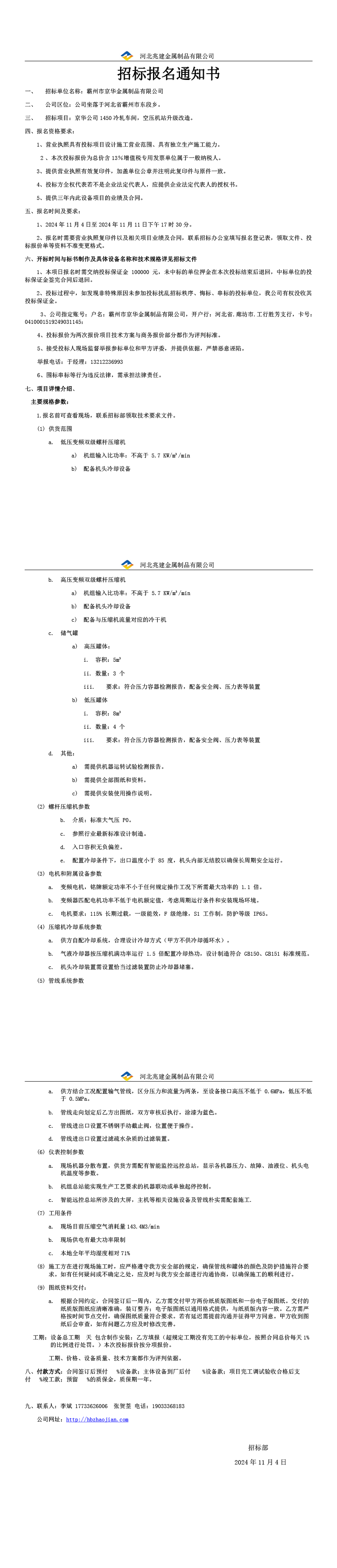 - 招標(biāo)業(yè)主: 河北兆建金屬制品有限公司